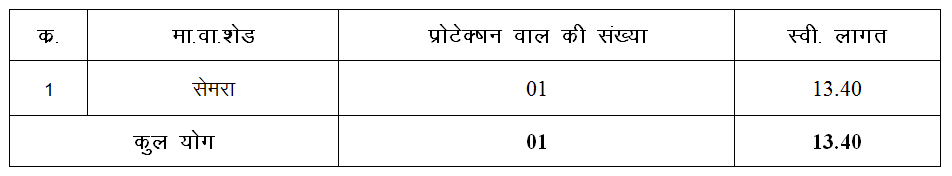 वर्ष 2017-18 में परियोजना क्षेत्र में सम्मिलित ग्राम. - सेमरा में प्रोटेक्षन वॉल (तटबंध) निर्माण किये जाने हेतु अभिसरण अंतर्गत स्वीकृति प्राप्त हुआ था। स्वीकृत निर्माण कार्य IWMP से 7.80 लाख रू. एवं MGNREGA से 5.60 लाख रू. कुल 13.40 लाख रू. की स्वीकृति प्राप्त हुई थी।